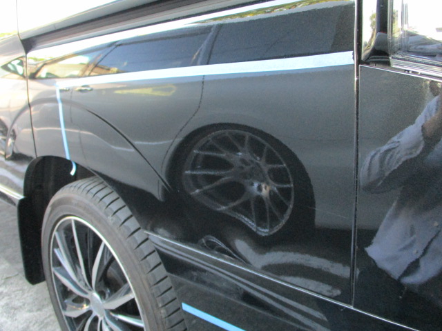 ワンボックスタイプのリアフェンダー修理・塗装