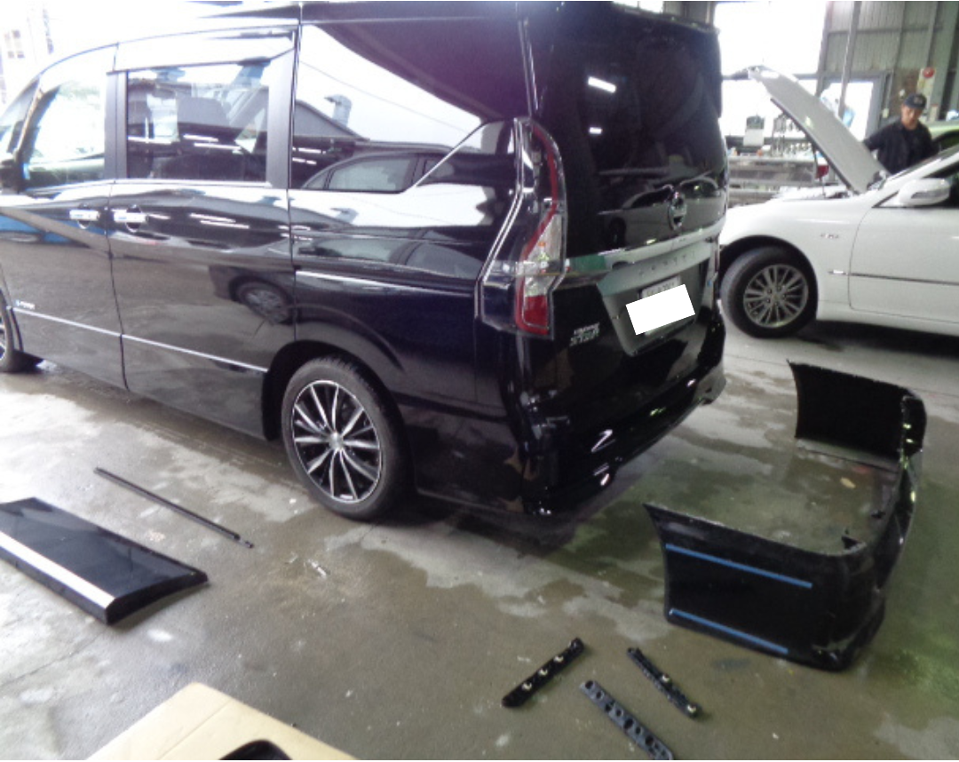 今回はワンボックスタイプのリアフェンダーの修理を紹介します。